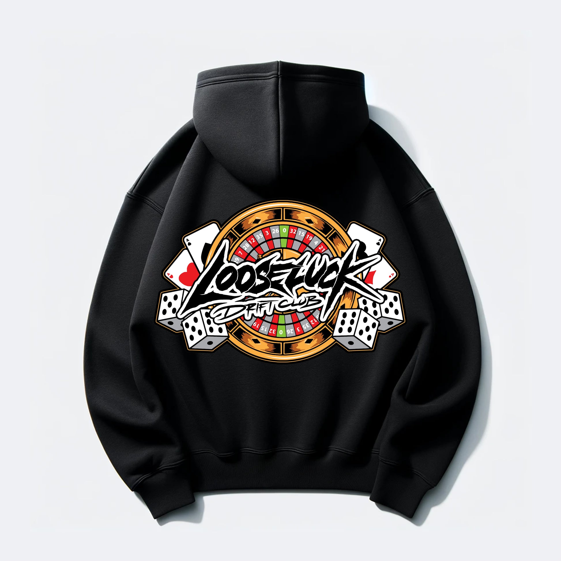 100% Cotton Relaxed fit Hoodie with our Large iconic Gambler design on the back accompanied with "Loose Luck Drift Club" print on left chest. Represent us in style with our OG design!
